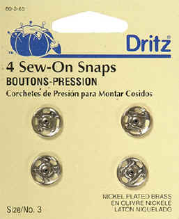 80-3-65 Sew-On Snaps - Nickel - Size 3 - 4 Sets.